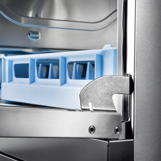 Mjuk och tyst öppning och stängning av diskmaskinens lucka tack vare stötdämpare på luckfjädringen. Detta skyddar porslinet och förhindrar slitage på luckfjädringen.